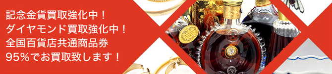 貴金属、インゴッド、ダイヤモンド、宝石、ブランドバッグ、ブランドアクセサリー、ロレックス、オメガ、シャネル、カルティエなど高級時計、金貨、銀貨、テレカ、株主優待券などの金券、洋酒、日本酒、楽器、古銭、小判、壊れたロレックス、その他壊れた高級時計、電化製品、絵画、使用ずみ万年筆、その他色んな物、ご相談ください!!!